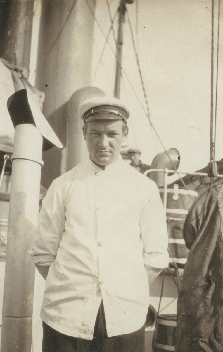 Fotografi från expedition till Sveagruvan. Motiv av sjöman ombord på skepp.
