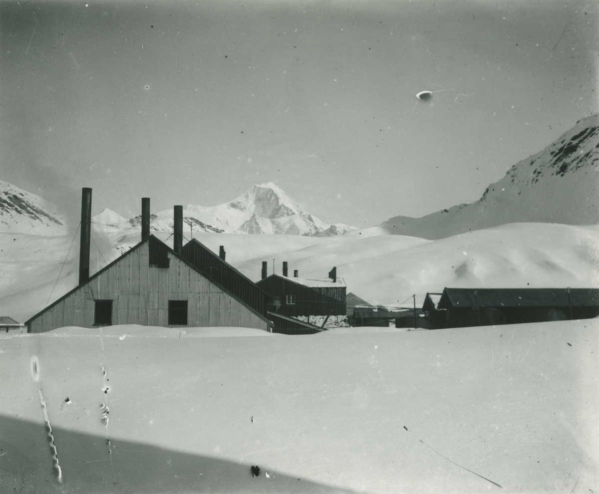 Bild från expedition i Antarktisområdet. Motiv av insnöade hus.