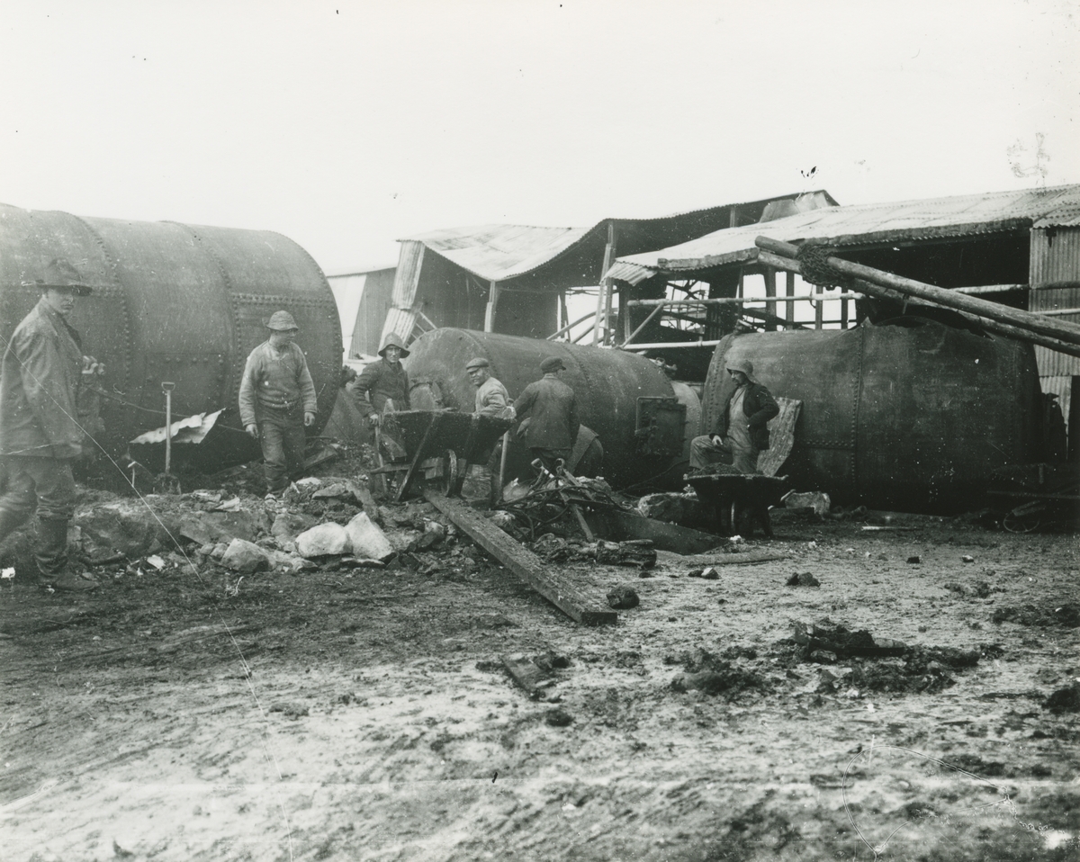 Bild från expedition i Antarktisområdet. Motiv av män med skottkärror.