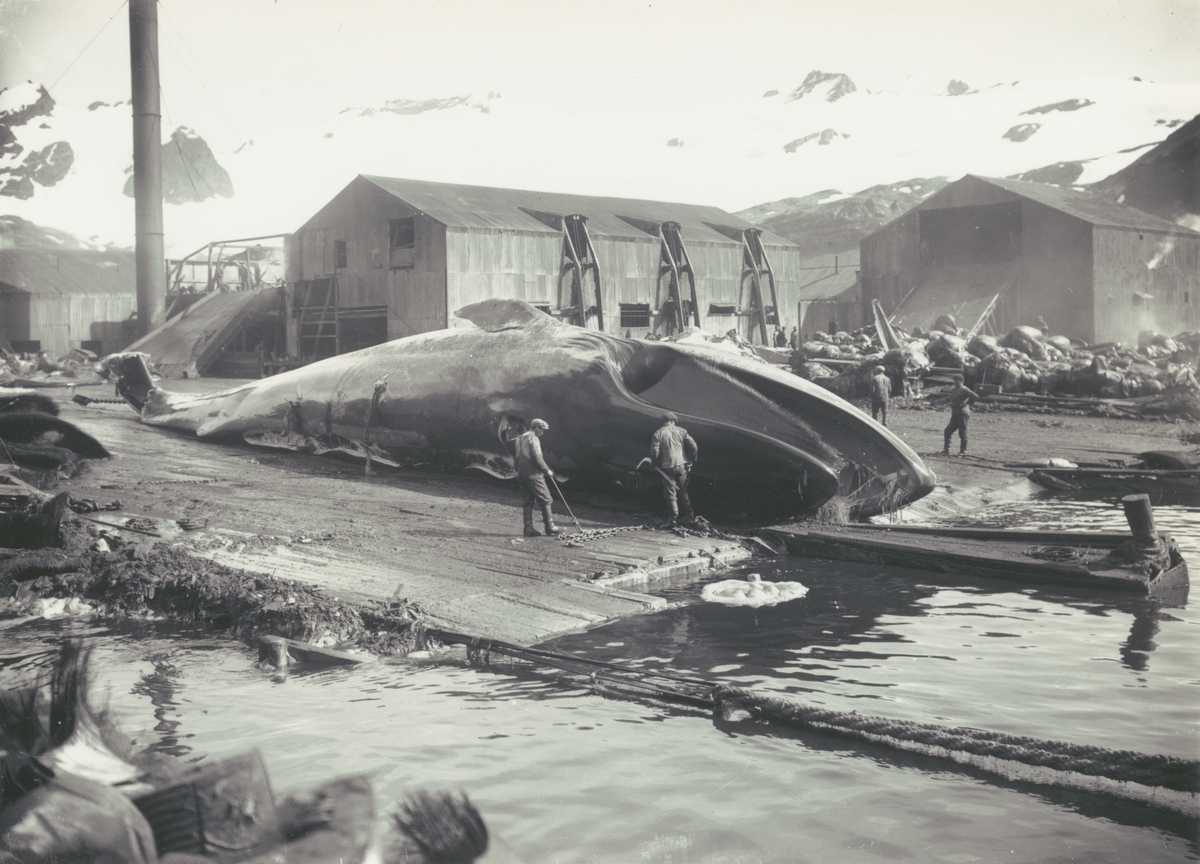 Bild från expedition i Antarktisområdet. Motiv av död val uppdragen på land.