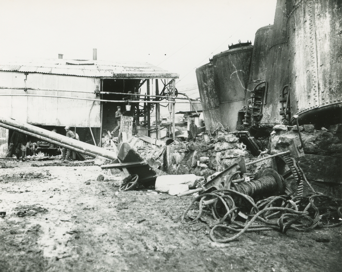 Bild från expedition i Antarktisområdet. Motiv av män som arbetar i hamn, Sydgeorgien.