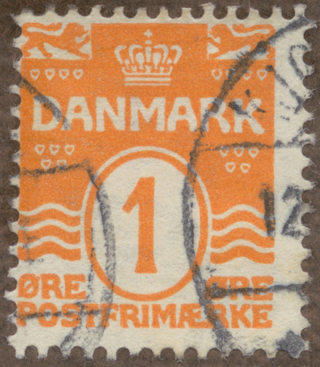 Frimärke från Danmark, 1905. Motiv av Danmarks Vapen Lejon Tre vågor