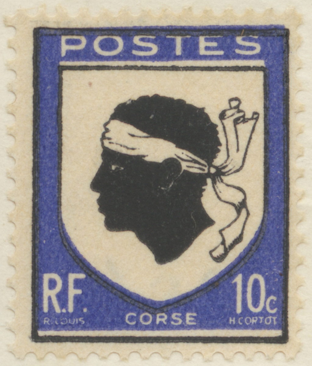 Frimärke från Frankrike, 1946. Motiv av Vapen Corse (Korsika) "-Serie: franska provinsers vapen-"