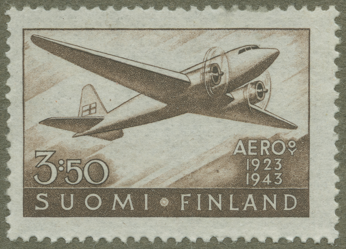 Frimärke från Finland, 1943 Motiv av Finskt postflygplan Finska luftpostens 20-årsjubileum. 1923-1943.