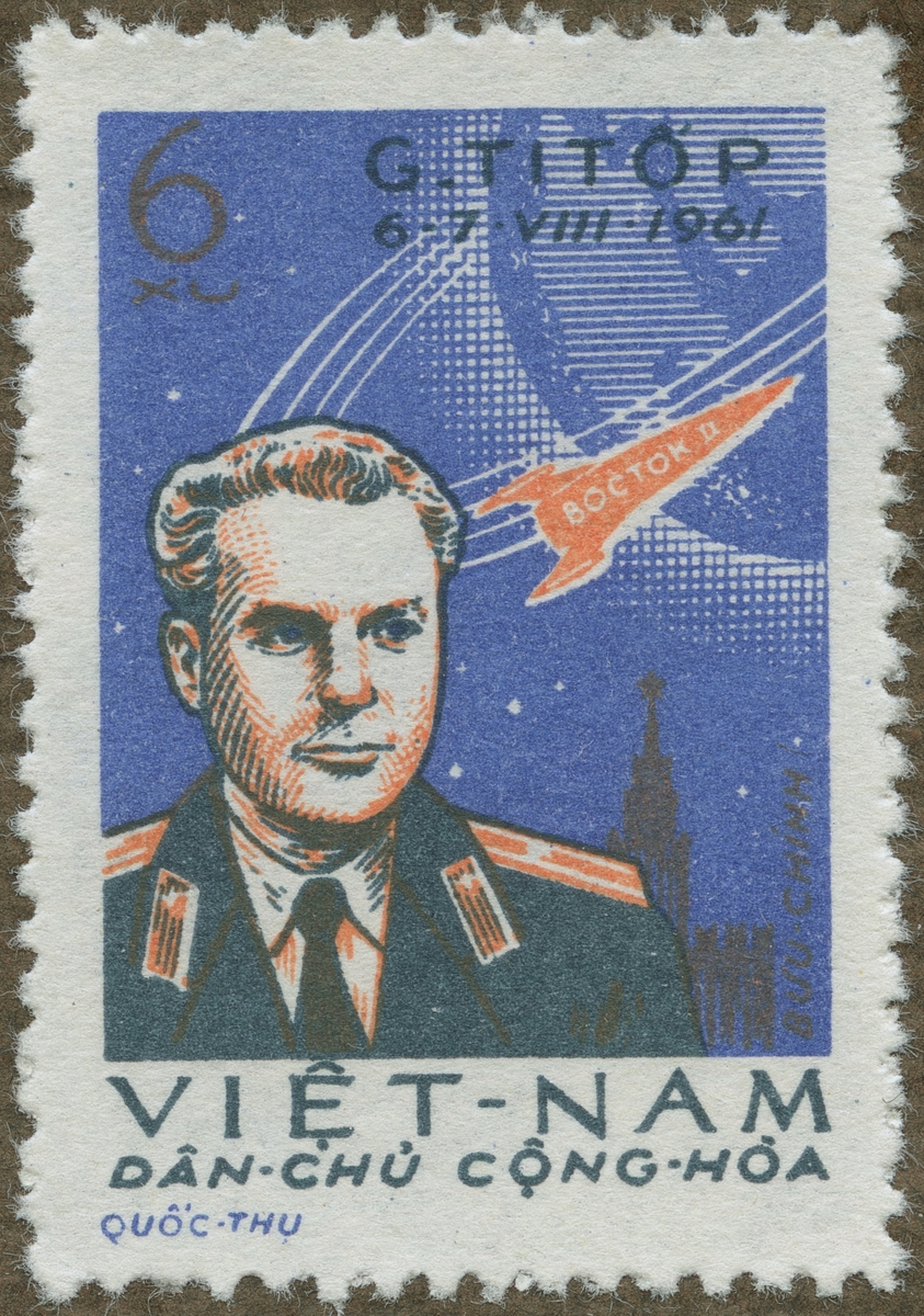 Frimärke från Nord Viet-nam, 1961. Motiv av Andra världskosmonaut, Herman Stepanovich Titov - Minne av hans världsflygning i rymdskeppet "Wostok" 6-7 augusti, 1961