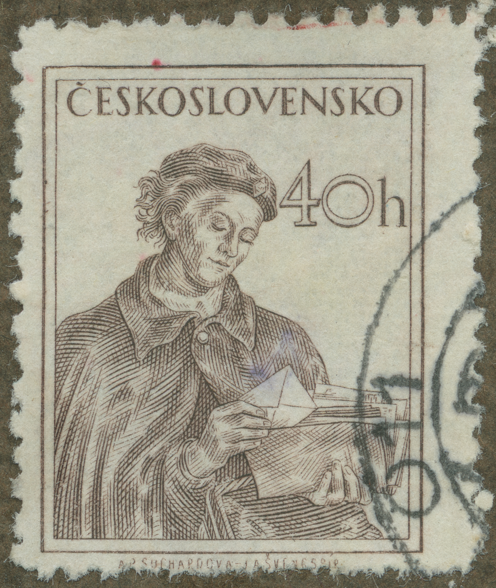 Frimärke från Tscheckoslovakiet, 1958. Motiv av Man med brevkuvert
