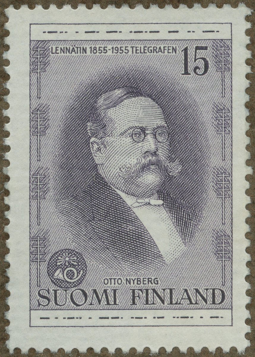 Frimärke från Finland, 1955. Motiv av Otto Nyberg Finska telegrafens grundläggare Telegrafen 100 år 1855-1955