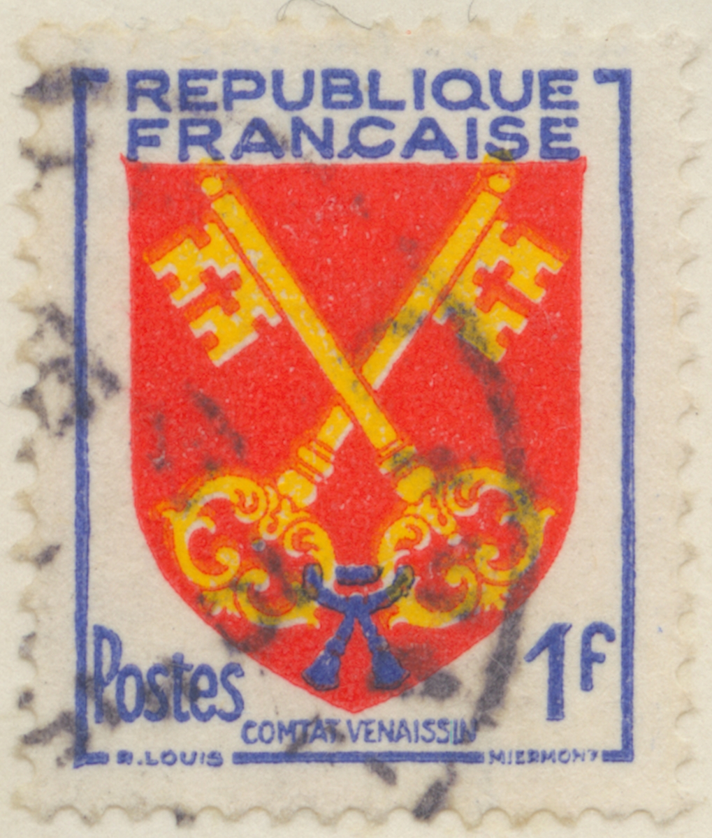 Frimärke från Frankrike, 1955. Motiv av Vapen: Comtat Venaissin "-Serie: franska provinsers vapen-"