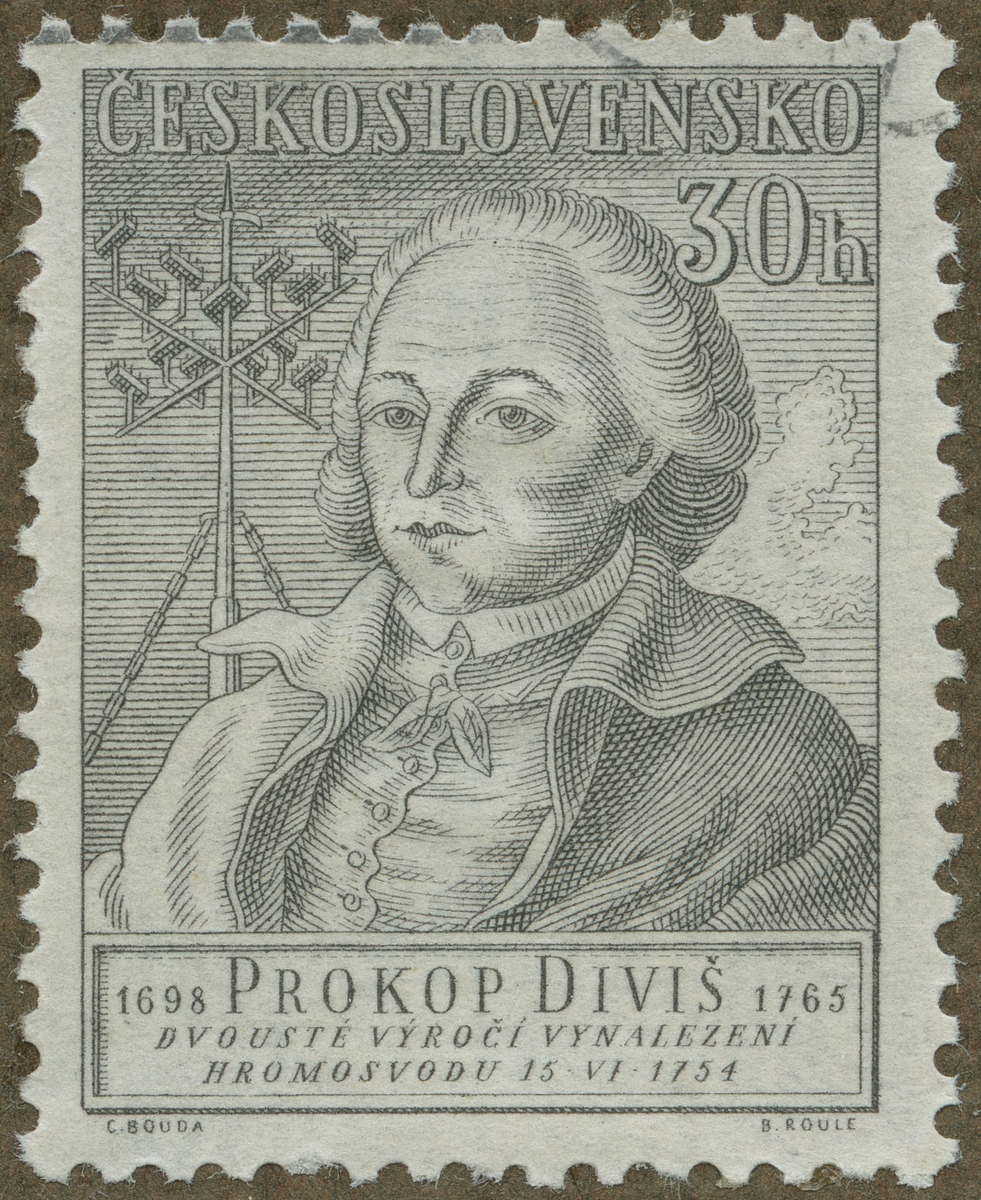 Frimärke från Tscheckoslovakiet, 1954. Motiv av Prokop Divis 1698-1765 Åskledarens uppfinnare 15 juni 1754: 200-årsminne