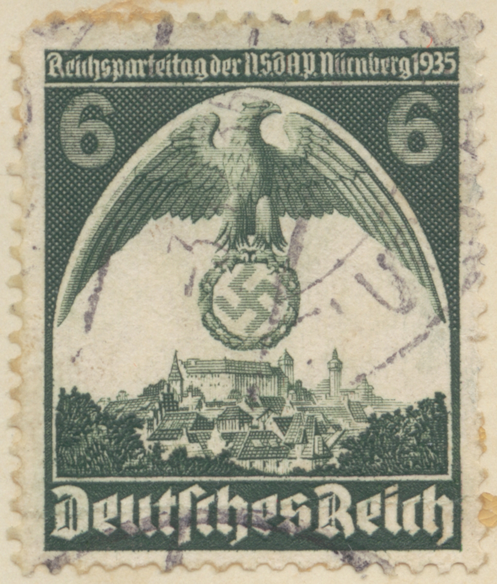 Frimärke från Tyskland, 1935. Motiv av Örn Hakkors Partidagen Nürnberg 1935