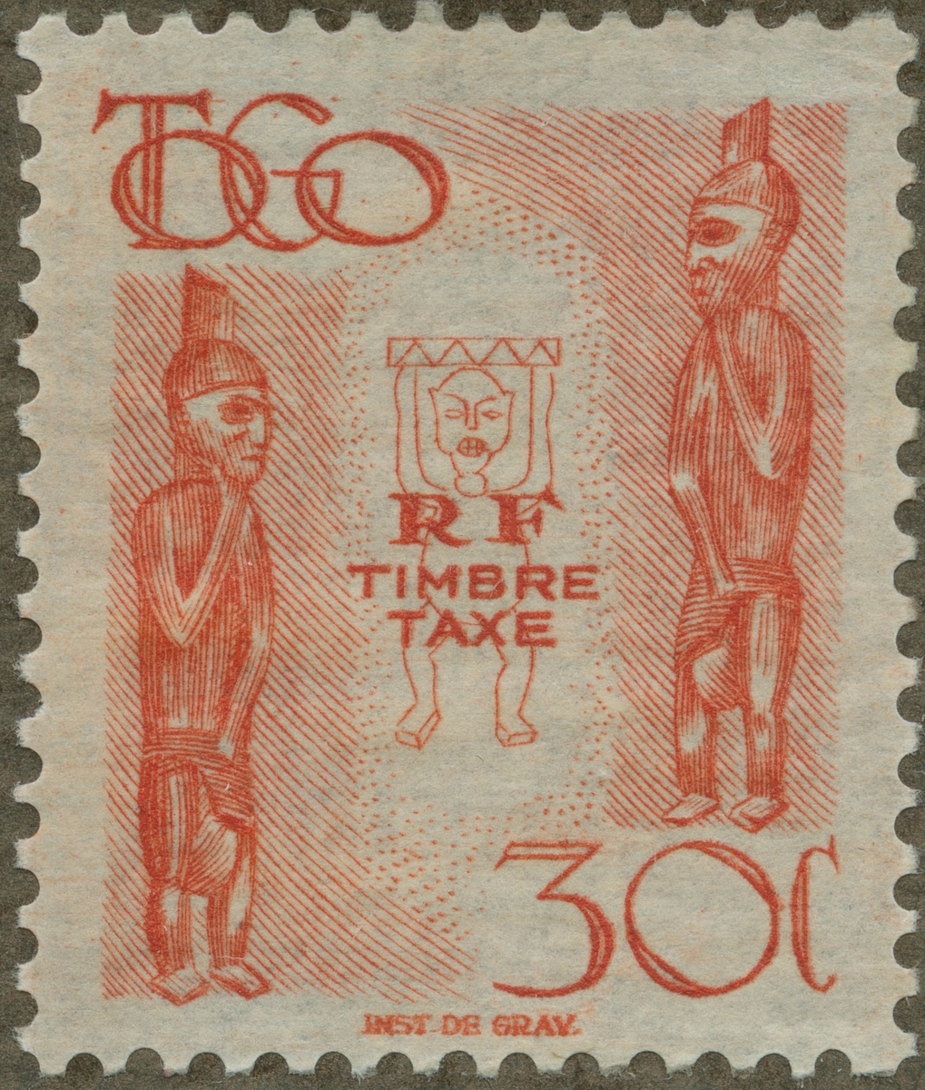 Frimärke från Franska Togo, 1947. Motiv av Afrikansk konst Gudabilder Franska Togo Västafrika