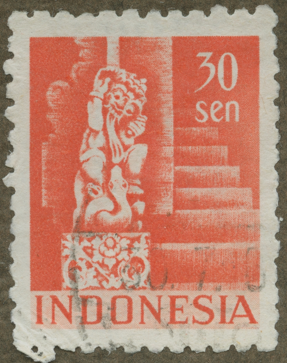 Frimärke från Indonesien, 1949. Motiv av Indonesisk gudaskulptur