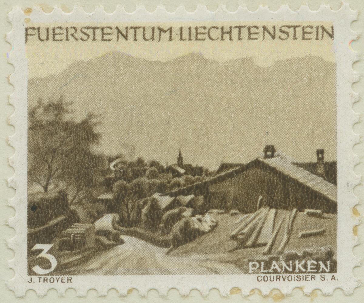 Frimärke från Liechtenstein, 1944. Motiv av Staden Planken