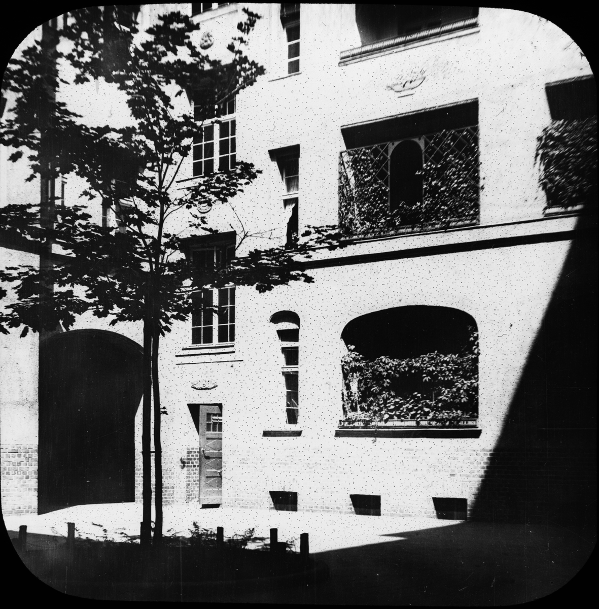 Skioptikonbild med motiv av hus i stadsdelen Schöneberg, Berlin.