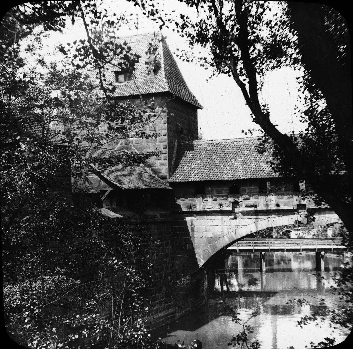 Skioptikonbild med motiv av Fleischerbrügge, Slaktarens brygga, Nürnberg.