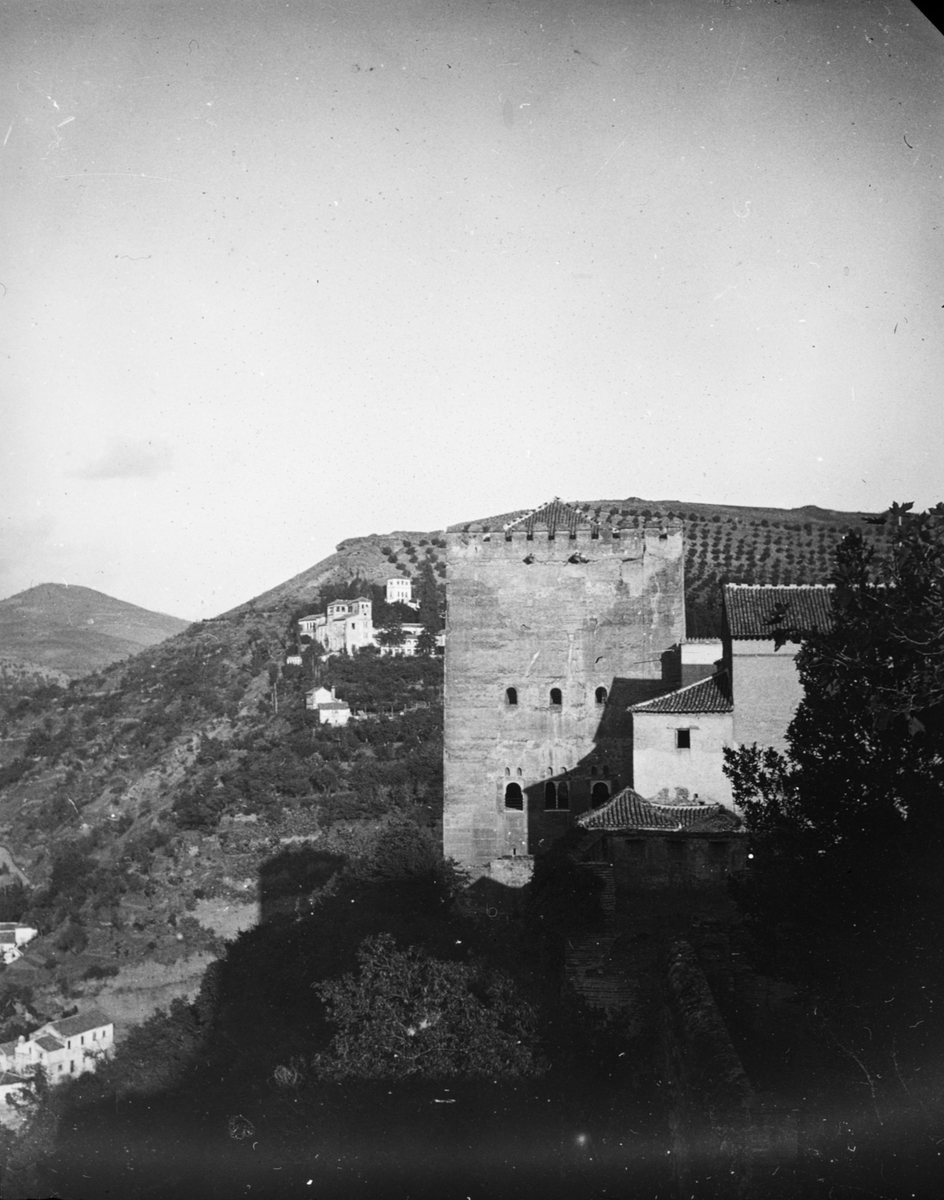 Bilden har förvarats i kartong märkt: Höstresan 1910. Alhambra 9. N:18. Text på bild: "Alhambra och Generalife".