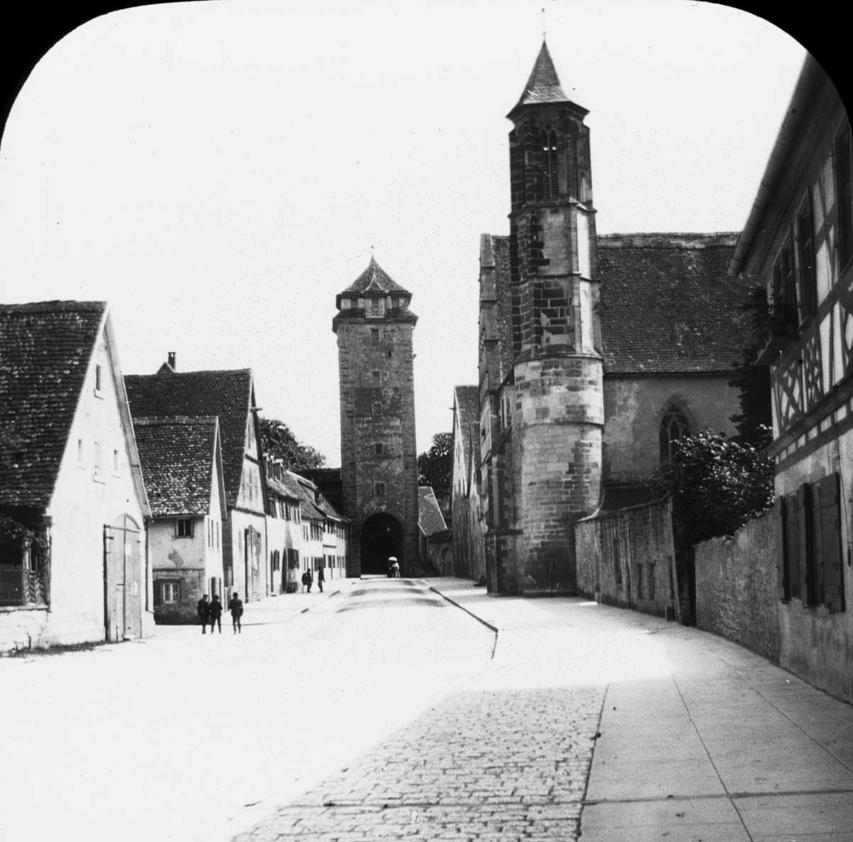Skioptikonbild med motiv av port i stadsmuren, Rothenburg.