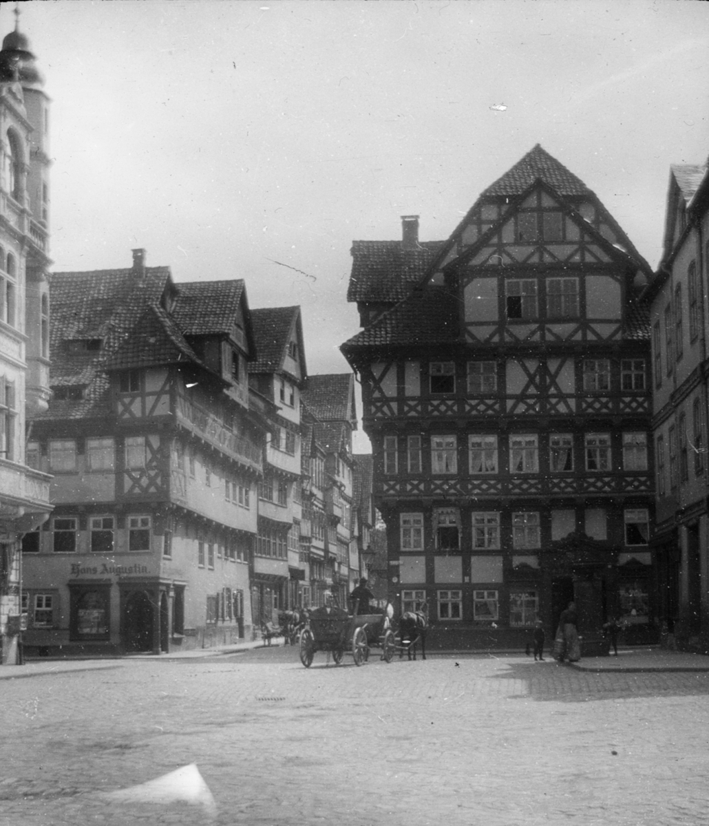 Skioptikonbild med motiv från marknadsplatsen i Hannoversch-Münden.