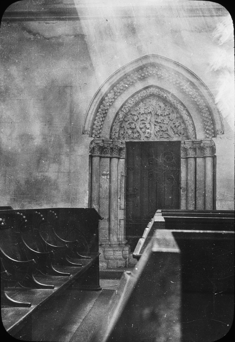 Bilden har förvarats i kartong märkt: Resan 1907. Magdeburg 6. Halle 2. No: 12.. Text på bild: "Domen".