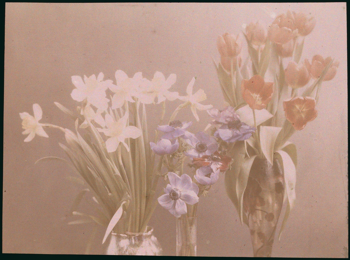 Lumière-autokrom. Blommor tulpaner, påskliljor m.fl.