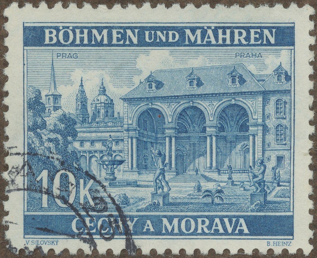 Frimärke från Böhmen o. Mähren, 1940. Motiv av Wallensteinska Palatset Prag