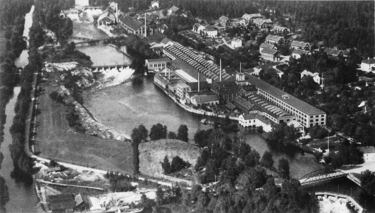 Bultfabriks Aktiebolaget i Halstahamma. Flygfotografi över fabriken 1933.