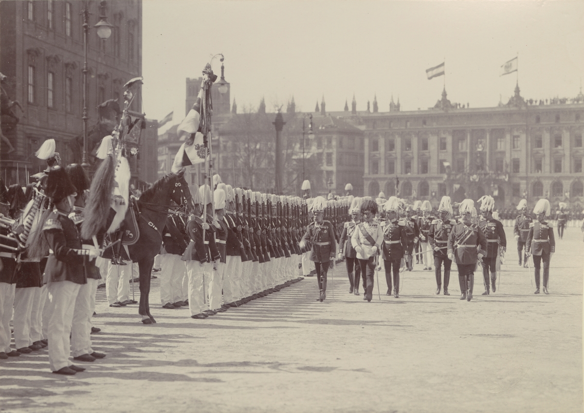 Ur album: Utländska Resan 1900 I. Berlin. Parad för Kejsar Franz Joseph.