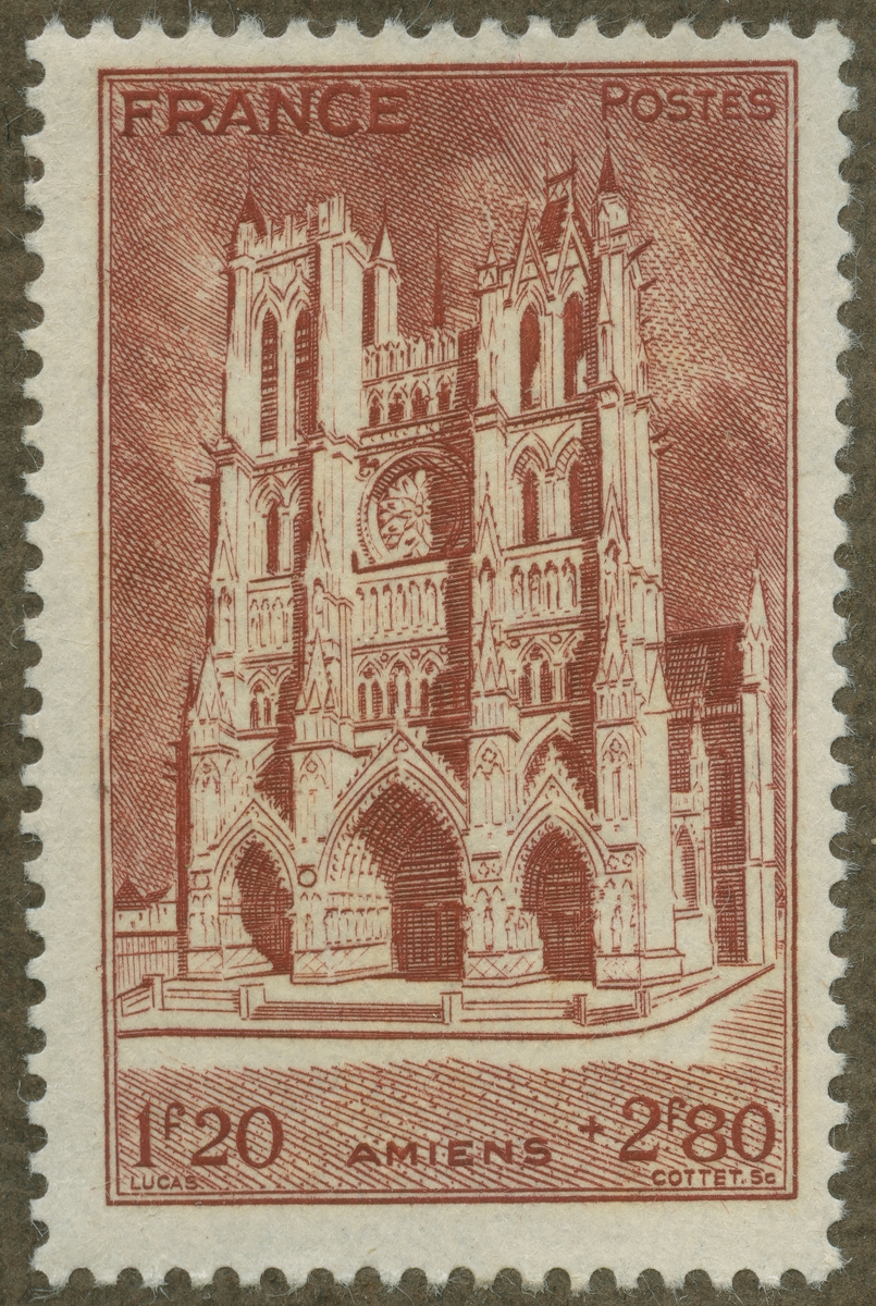 Frimärke från Frankrike. Motiv av katedralen i Amiens. "Serie: Franska Katedraler".