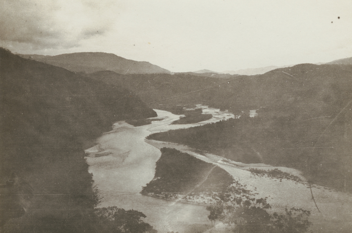 Fotografi från kuvert märkt med "Ernst Nordenskjöld". Motiv av flod som rinner genom bergslandskap.