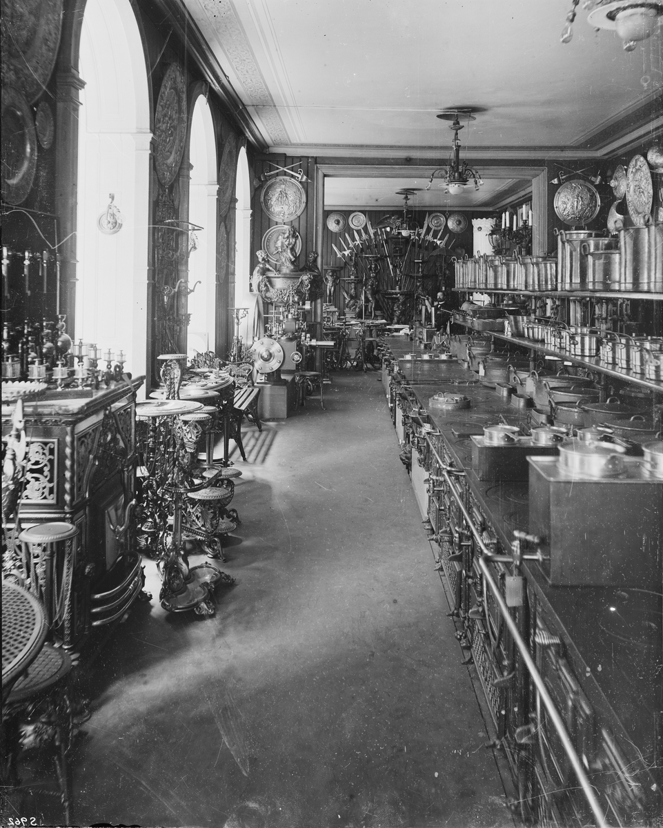 Utställning för köksutrustning, järnbord m m. Okänd ort.