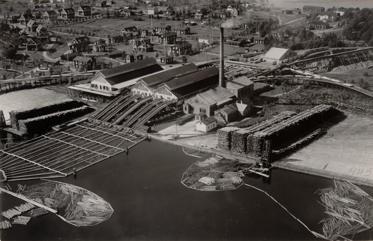 Titel: Flygfotografi över Sandviks Sågverk, Västerbotten.