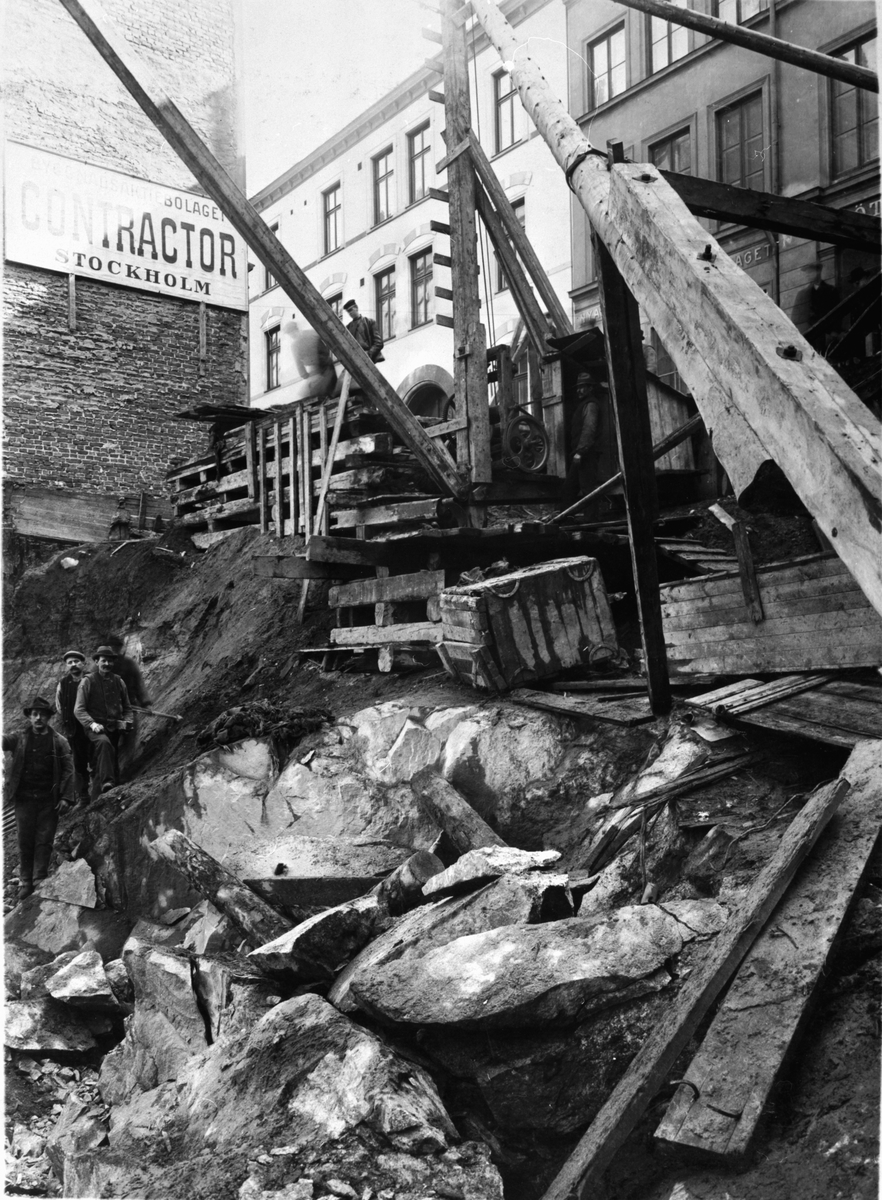 Titel: Byggherre: Byggnadsaktiebolaget Contractor, Stockholm. Grundläggning för Skandiabiografen. Arkitekt E.G. Asplund.