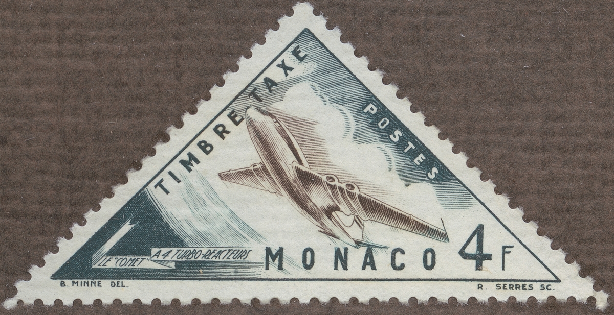 Frimärke från Monaco, 1953. Motiv av Fyrmotorigt reaplan A 4-turboreaktor: "Le Comet" "-Transport serie-"