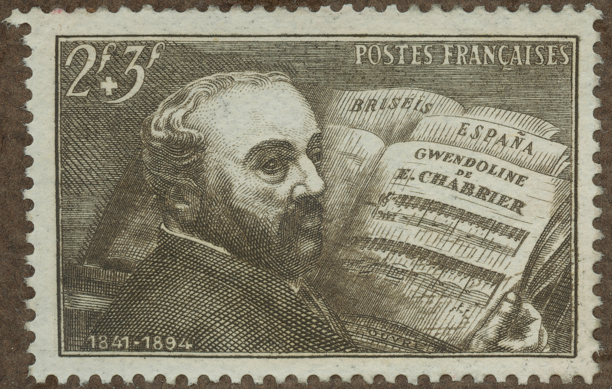Frimärke från Frankrike, 1942. Motiv av Alexis E. Chabrier: 1841-1894. Kompositör. 100-årsminne av hans födelse: 1841-1941.