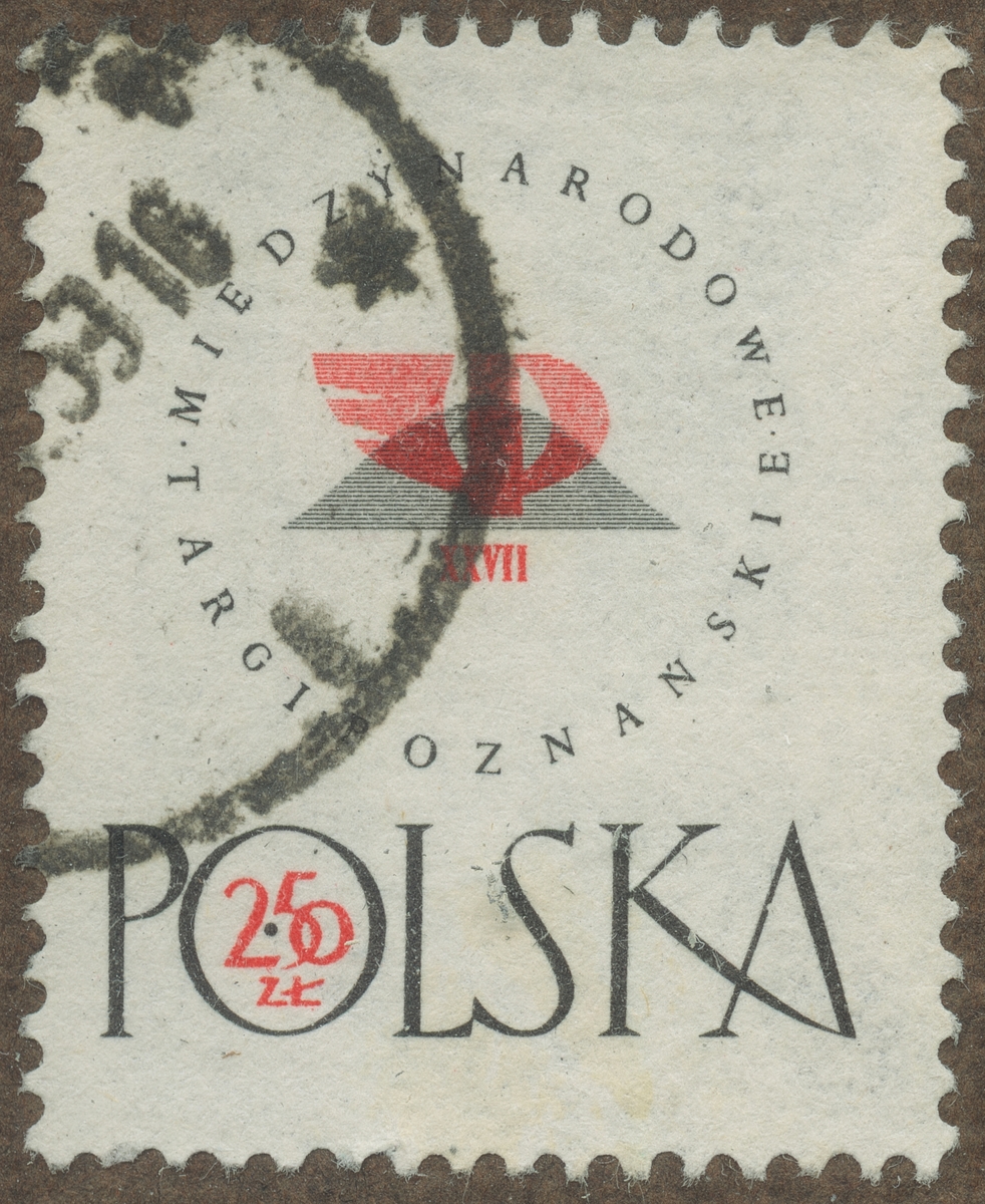 Frimärke från Polen, 1958. Motiv av Symbol Bilder Mässan i Poznan 1958