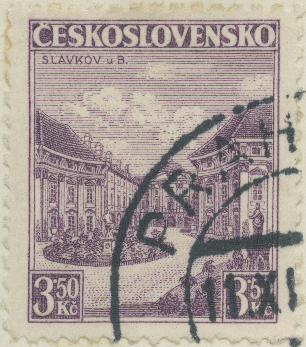Frimärke från Tscheckoslovakiet, 1936. Motiv av Austerlitz Slavkov.