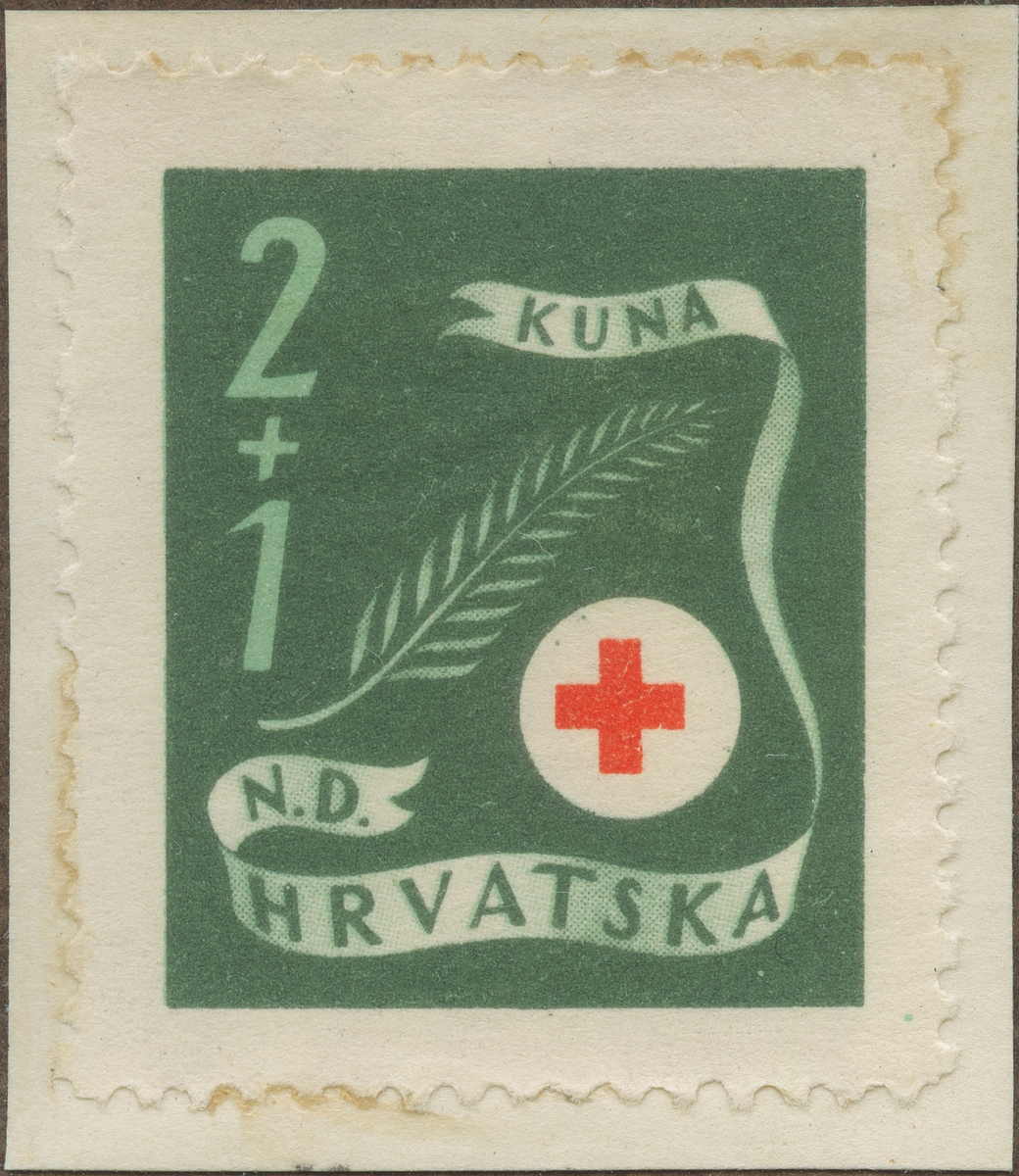 Frimärke från Kroatien, 1944. Motiv av Fredspalm m.m.
