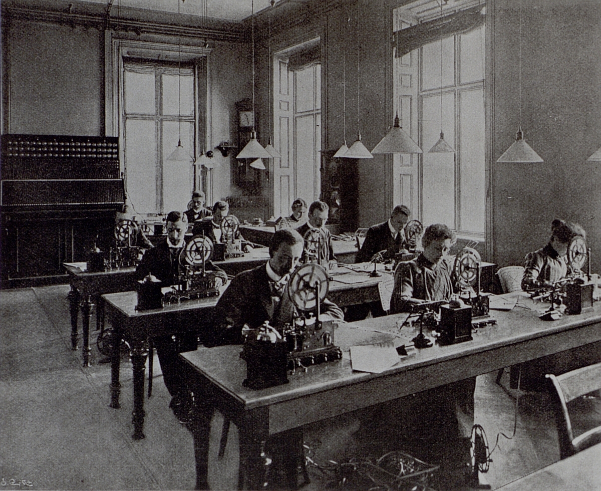 Stockholm. Interiör från Stockholms centraltelegrafstation omkring sekelskiftet 1900.