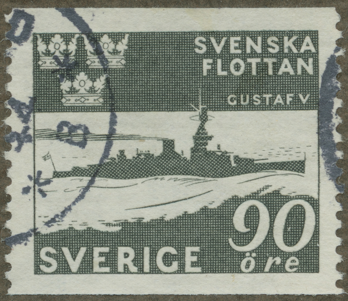 Frimärke från Sverige, 1944. Motiv av Pansarkryssaren "Gustaf V" "Svenska flottan serie"