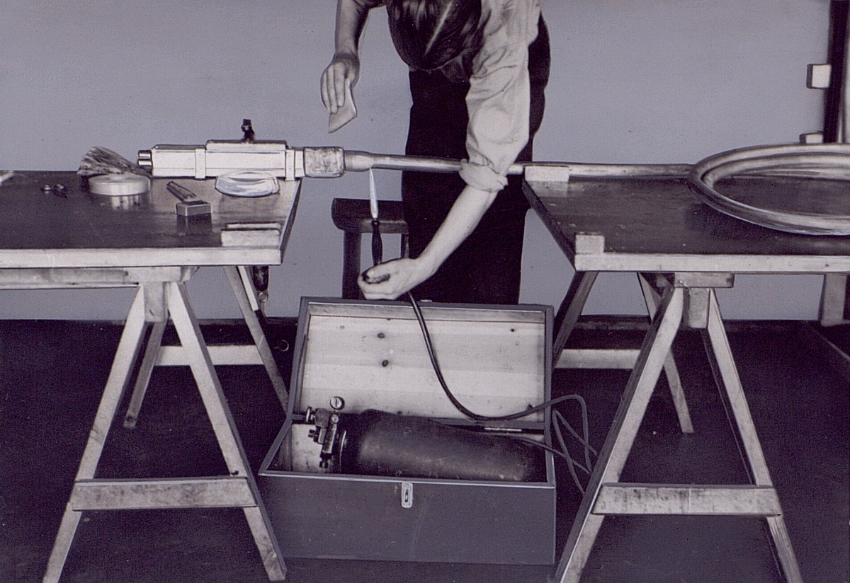 Montering av växel: Inledningskabeln fastlödes vid slutrörsboxen.