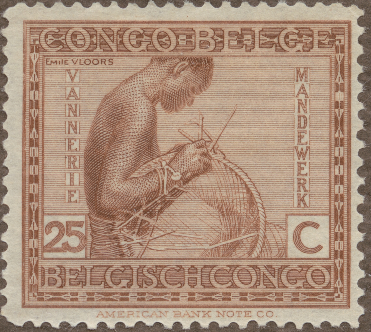 Frimärke från Belgiska Congo, 1923. Motiv av korgflätning.
