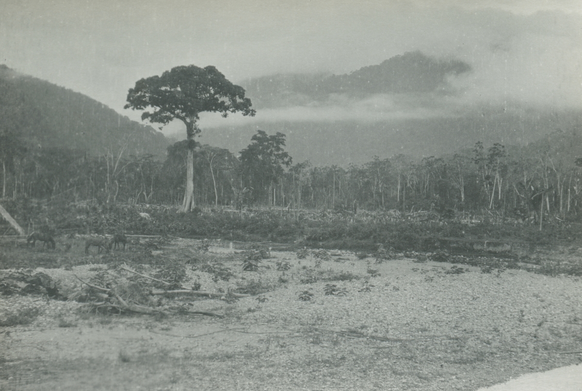 Fotografi från expedition till Peru 1920. Vy över delvis skövlat djungellandskap.