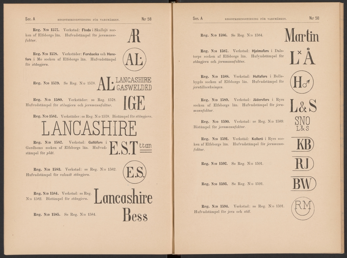 Registreringstidning för varumärken 1885. Serie A, Svenska järnstämplar.