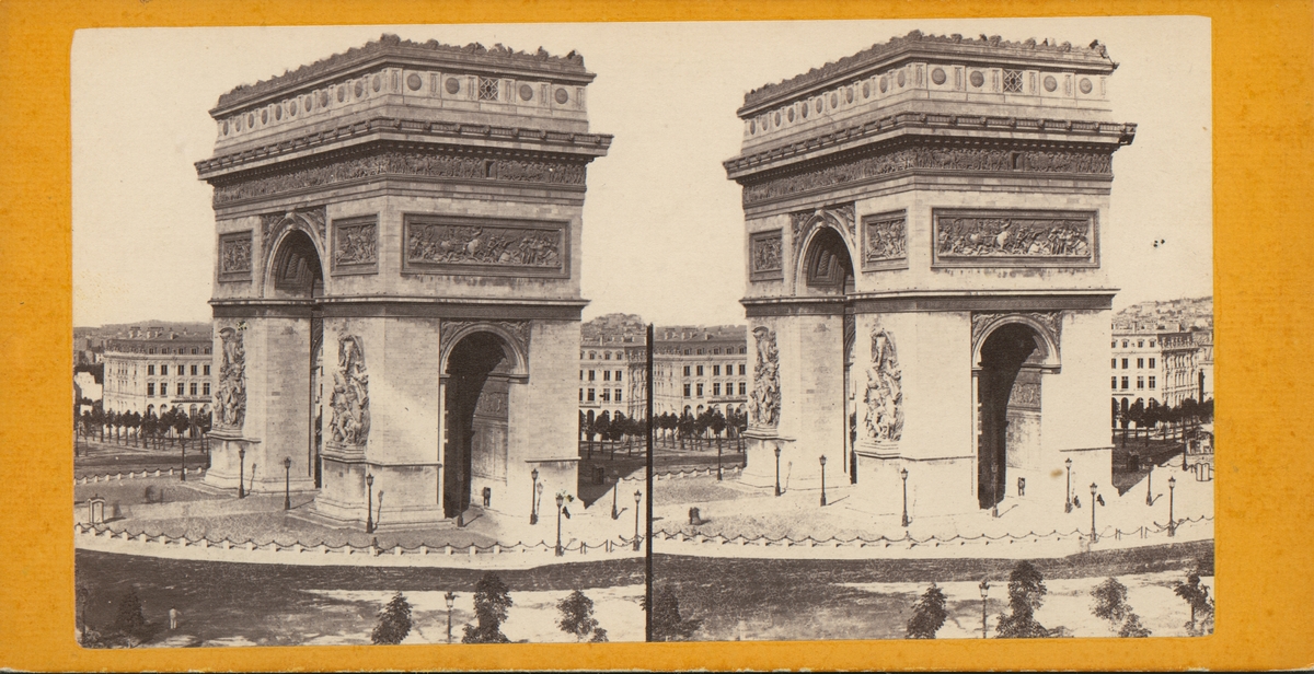 Stereobild med motiv av Triumfbågen, Arc de Triomphe, Paris.