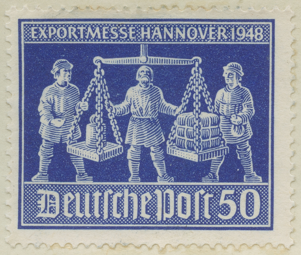 Frimärke från Tyskland, 1948. Motiv av Symbol för Handel Hannover Mässan 1948