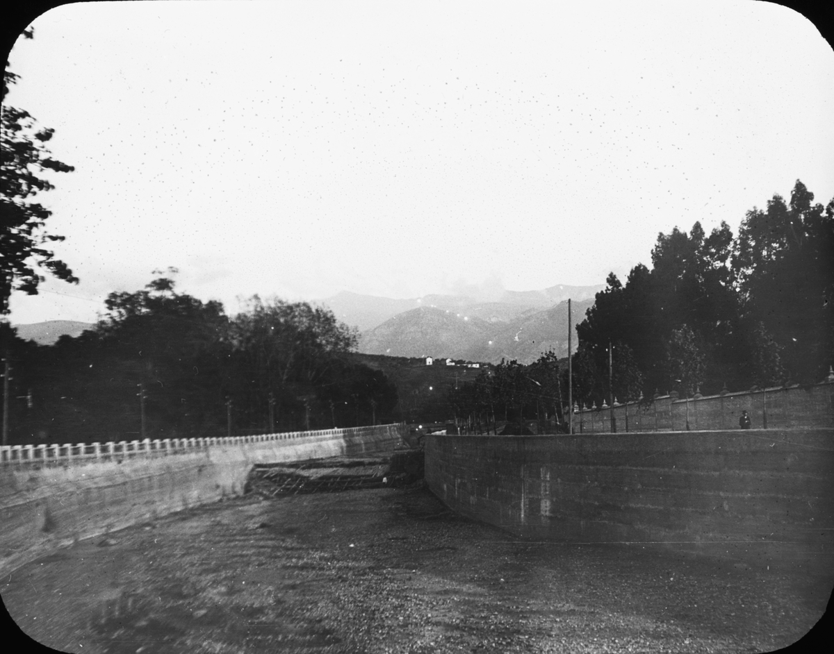 Skioptikonbild med motiv av floden Rio Genil. Bakom skymtar bergskedjan Sierra Nevada.