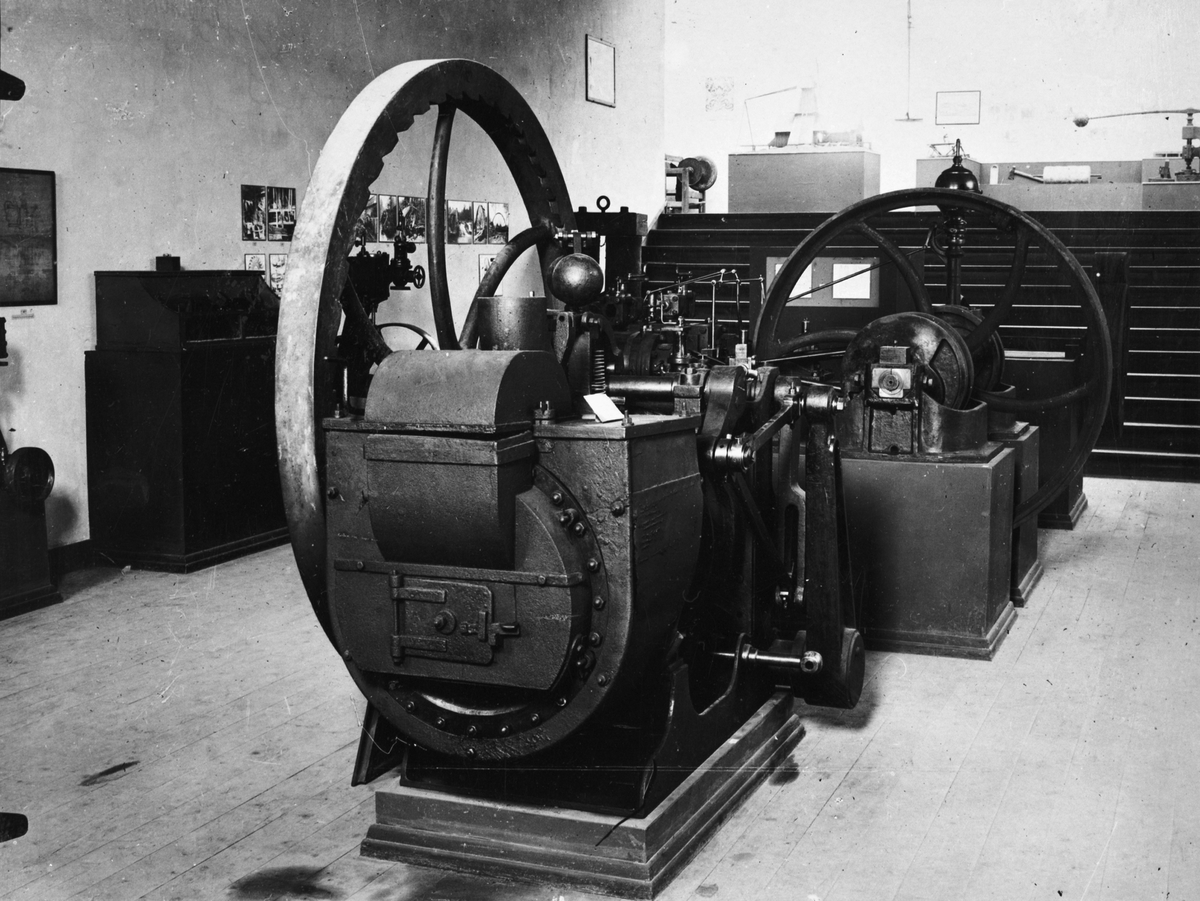Industrihistoriska avd. rum 87. Kraftmaskiner. Ericssons varmluftsmaskin i förgrunden.