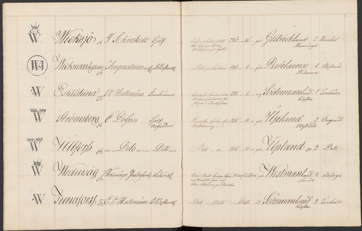 Titel: Stämpelbok vid Stockholms stora metall- och järnvåg inrättad år 1813. Handskrift. Ur Carl Sahlins bergshistoriska samling.