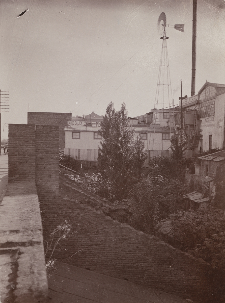 Fotografi från första svenska Antarktisexpeditionen 1901-1904. Motiv av hustak, hus och träd i en by.
