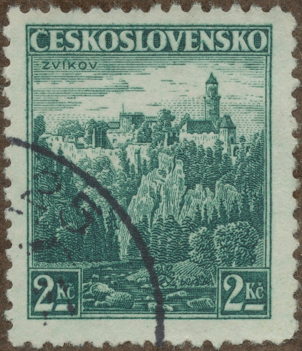 Frimärke från Tjeckoslovakien, 1936. Motiv av Zvikov Slott